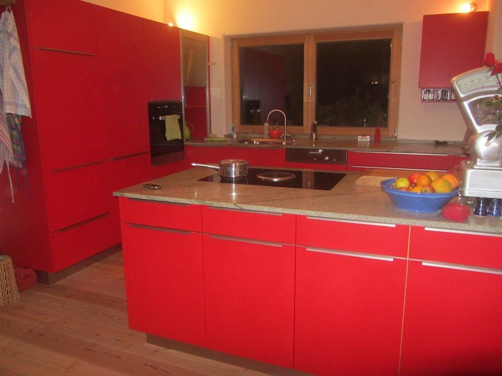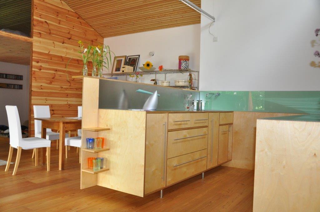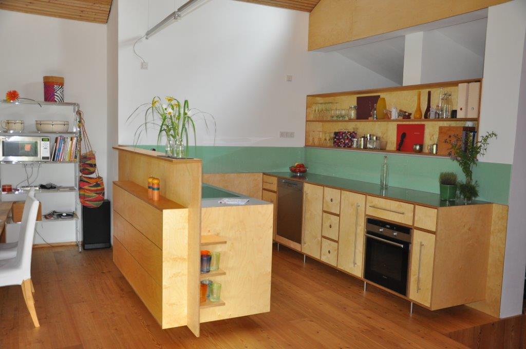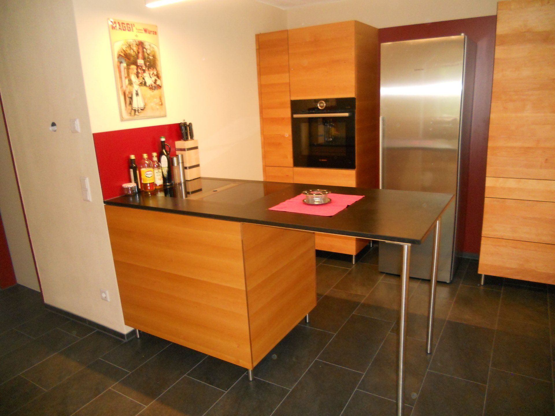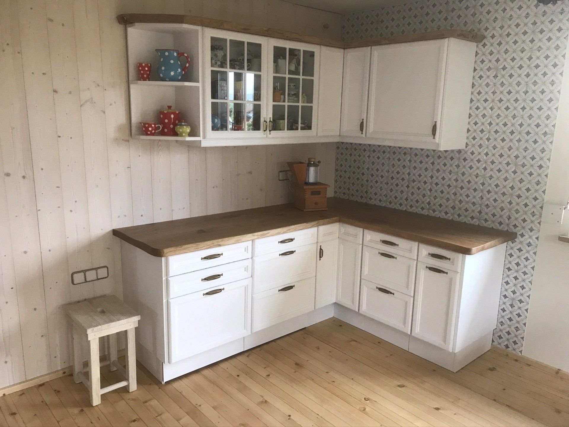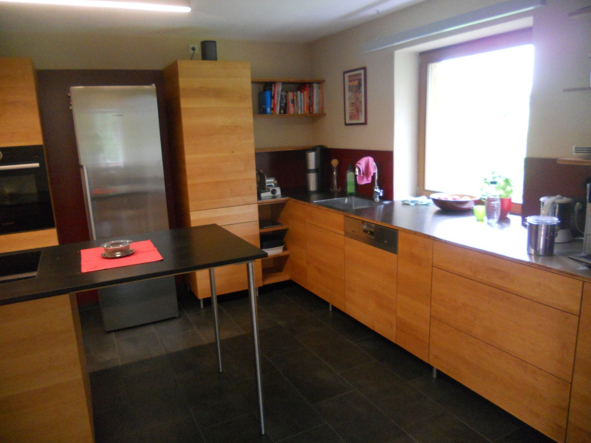 Vorhandene Küche neu gestrichen und Arbeitsplatte und Hängeschrankprofil neu in Eiche geölt