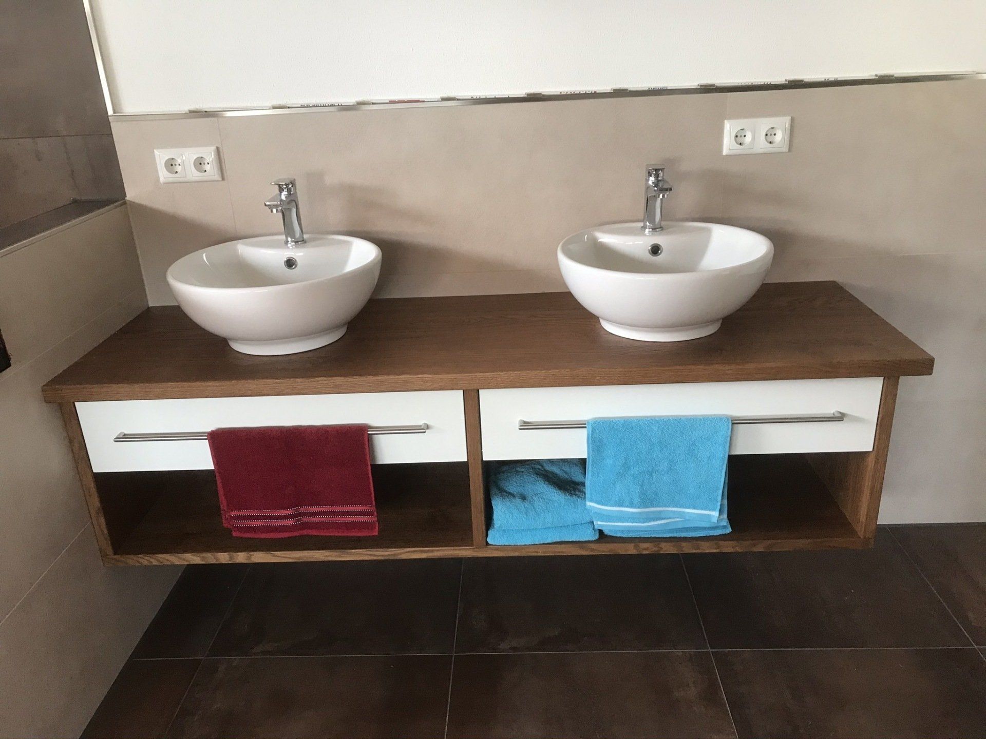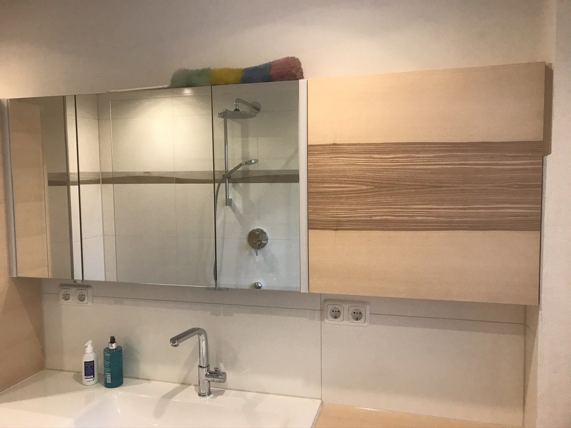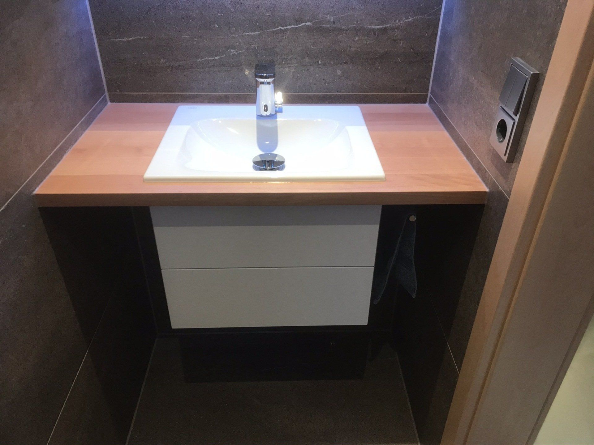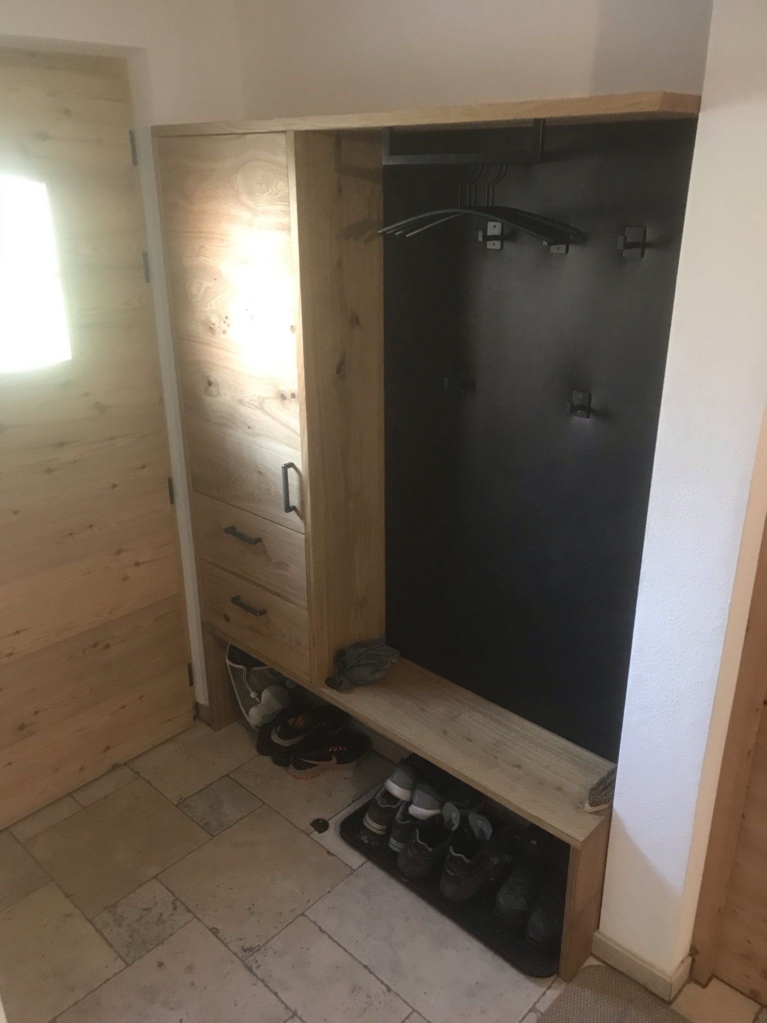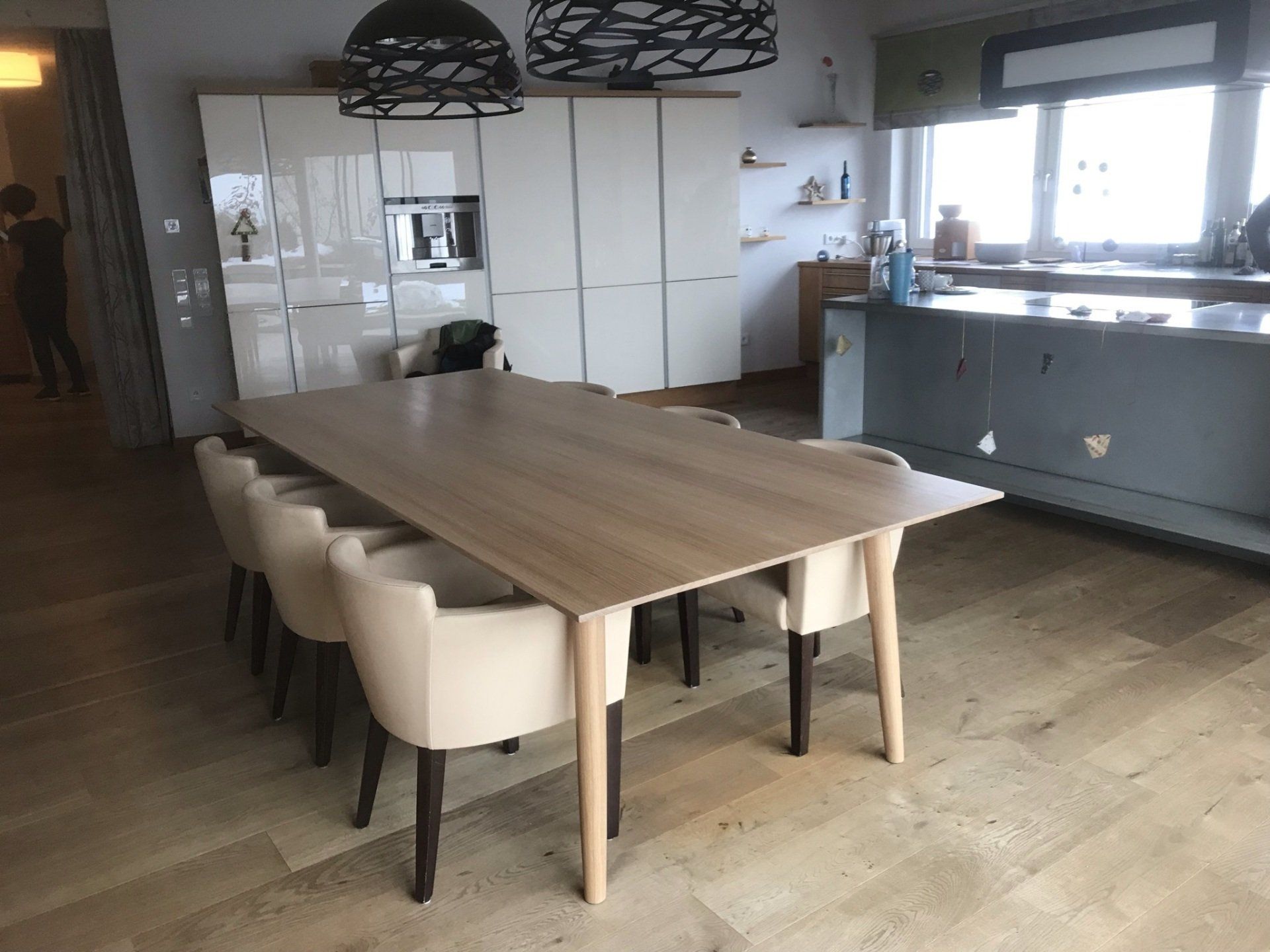 Vorhandene Küche neu gestrichen und Arbeitsplatte und Hängeschrankprofil neu in Eiche geölt