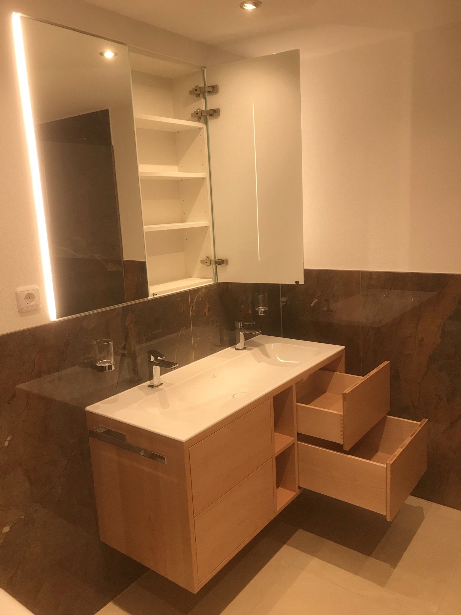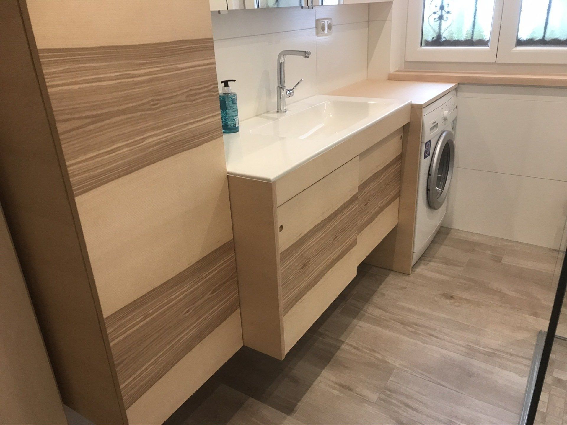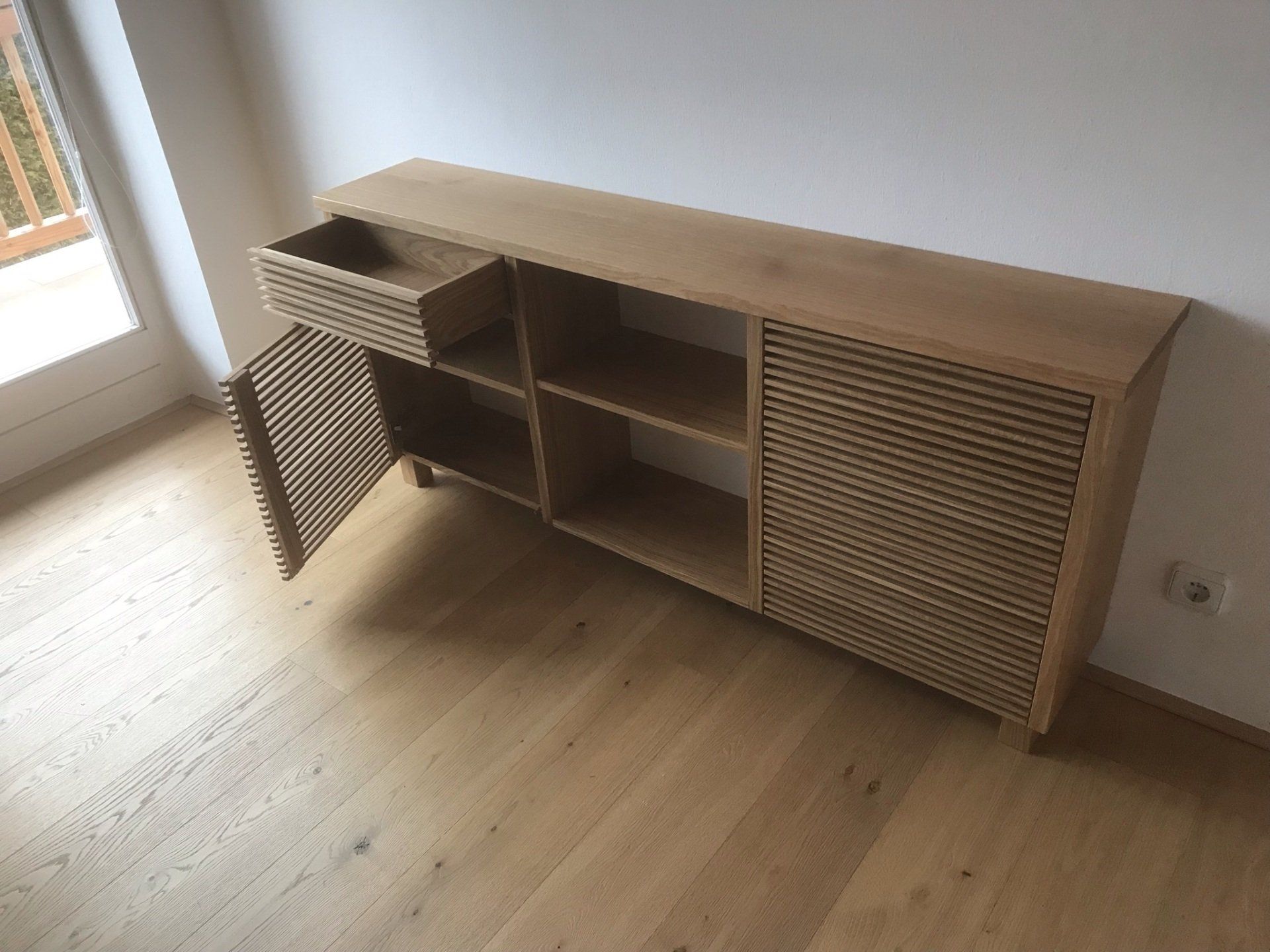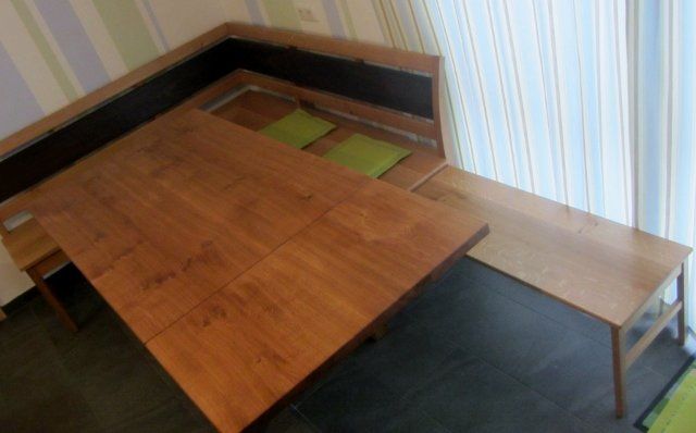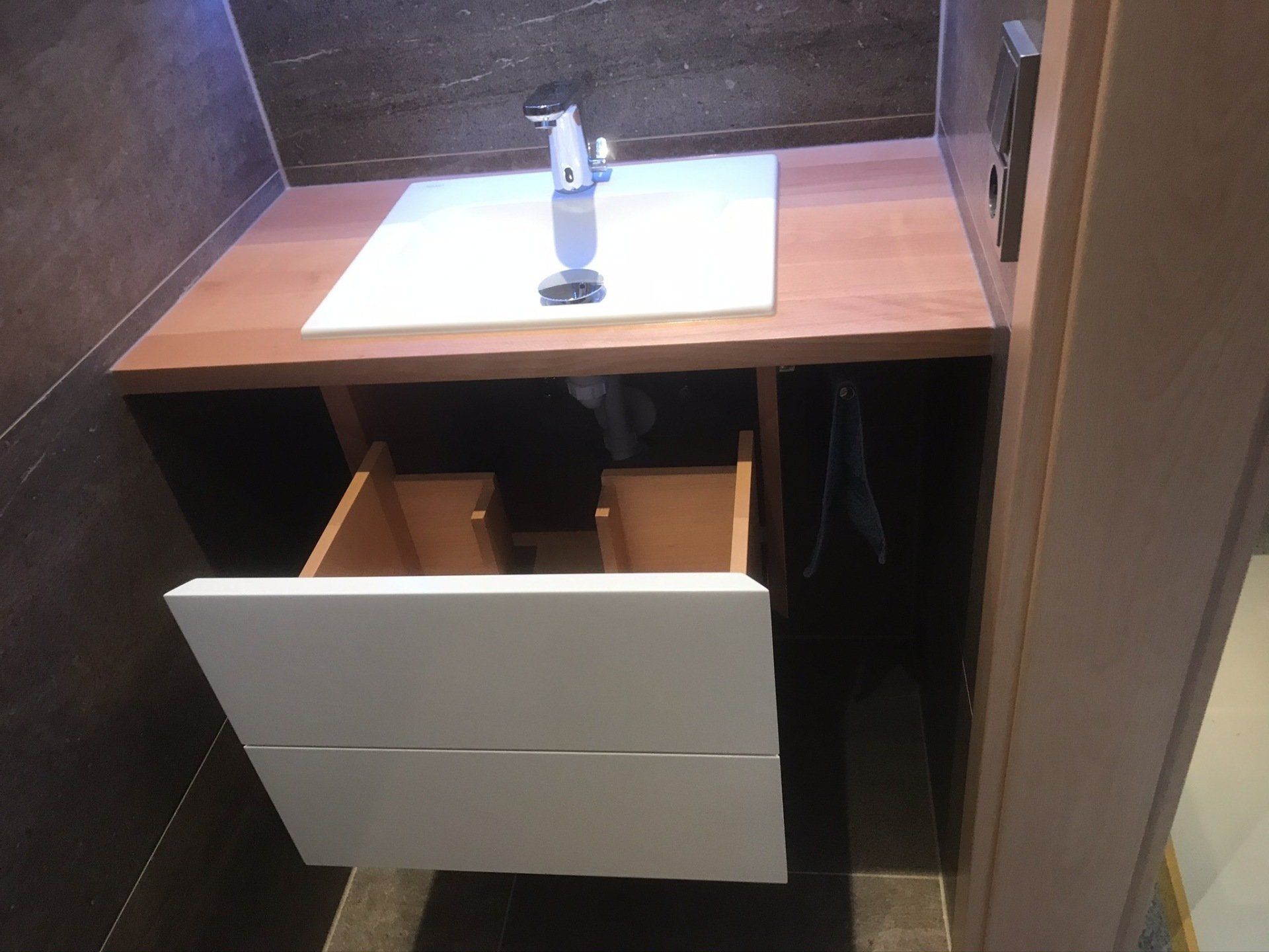 Vorhandene Küche neu gestrichen und Arbeitsplatte und Hängeschrankprofil neu in Eiche geölt